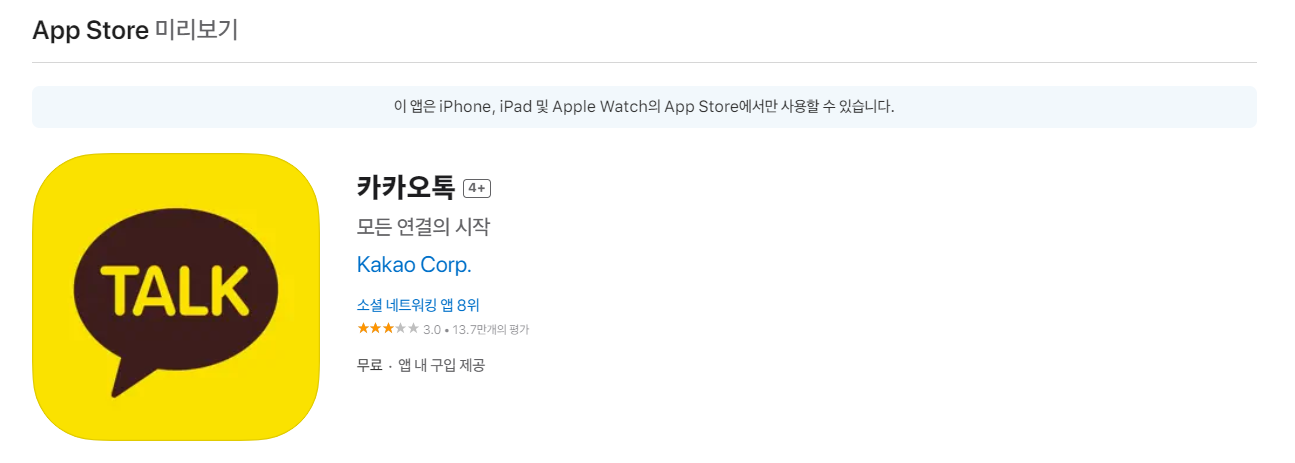 🚨 아래 버튼을 통해서 카카오톡 어플 아이폰, 아이패드용을 다운로드할 수 있습니다.